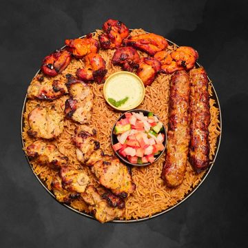 A complete, flavor-packed meal featuring our signature Savor Pulao rice, served with 2 crispy Shami Kababs, fresh salad, cooling raita, and 8 smoky, tender Malai Boti BBQ. A hearty platter that perfectly blends rich spices and grilled goodness in every bite.
